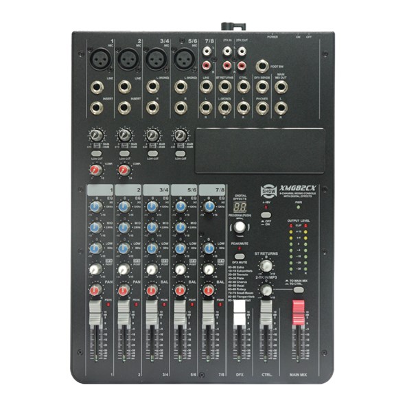- -8-kanálový mixážny pult, 100 prednastavených 24-bit DSP efektov - mikrofónové predzosilňovače s ultra nízkou úrovňou šumu a + 48V fantómovým napájaním